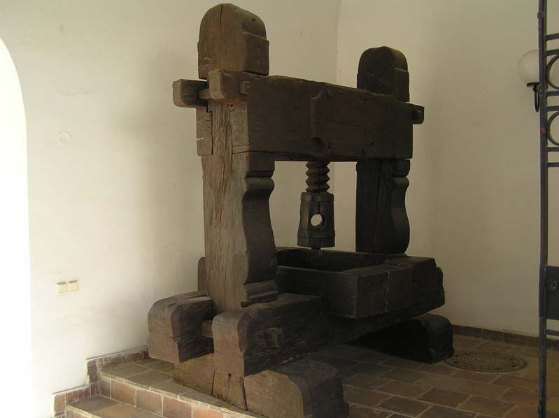 Stara śrubowa prasa winiarska z Čejkovic